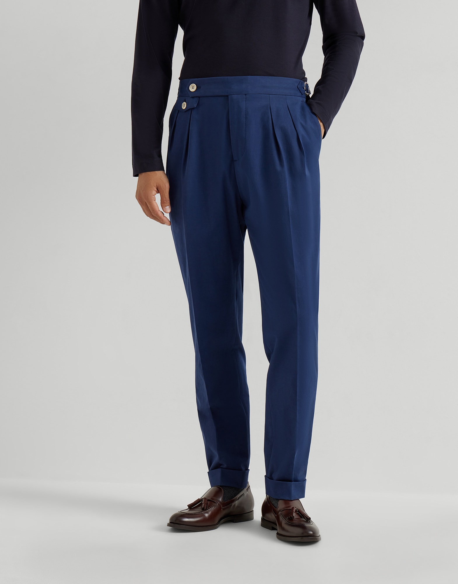 サイドバックル付き コンフォートコットン&カシミヤギャバジン テーラーフィット ダブルタックトラウザーズ