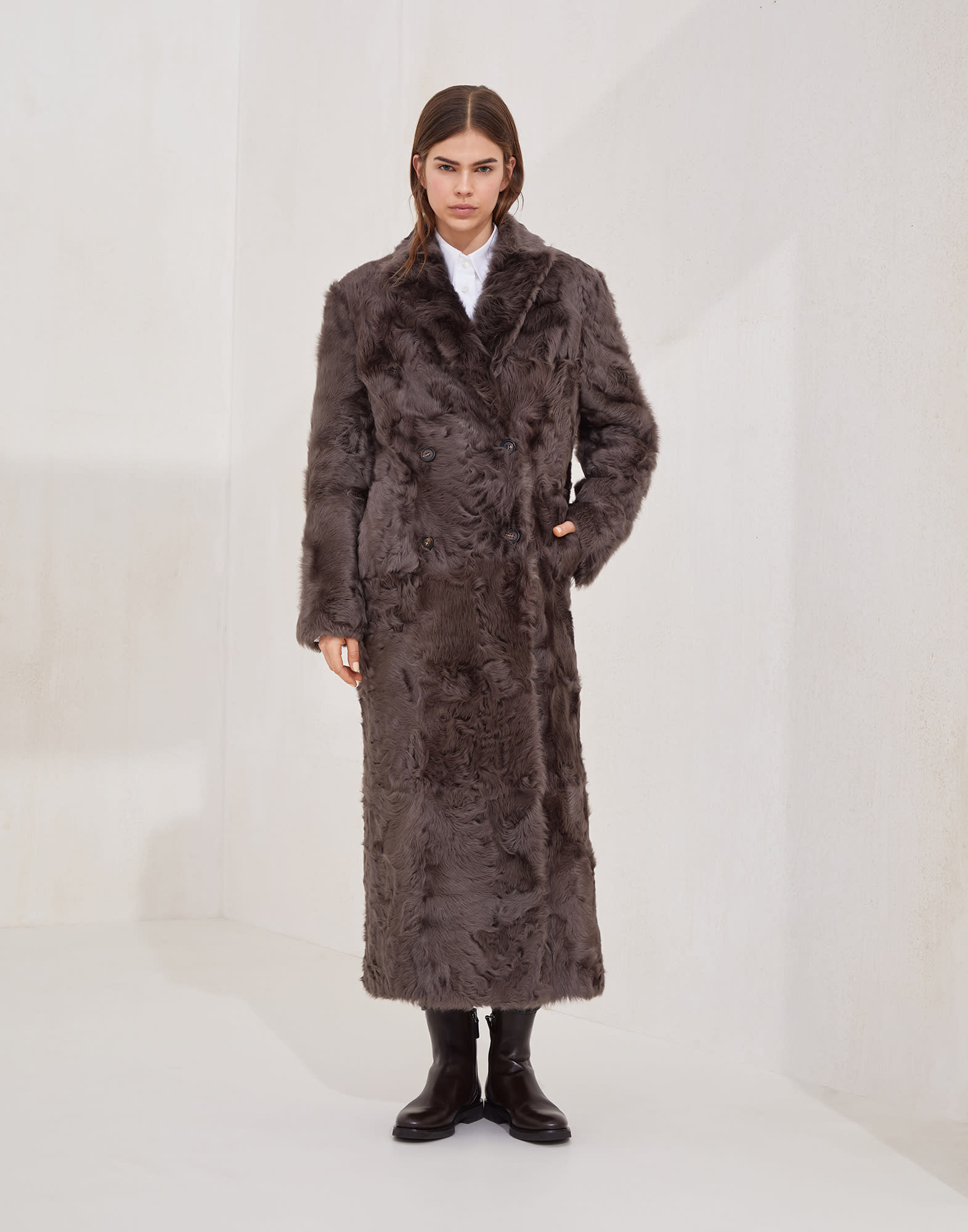 レディース 向け ダークブラウン モニーレ付き ウェービーシアリング コート | Brunello Cucinelli