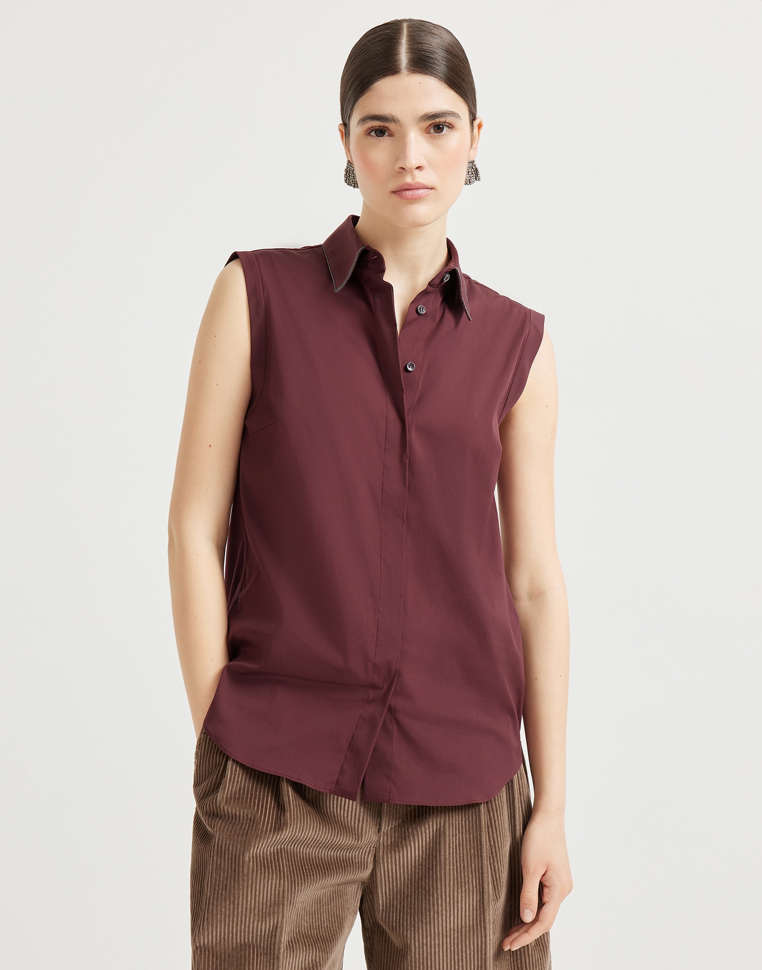 レディース 向け バーガンディー ストレッチポプリンシャツ | Brunello Cucinelli