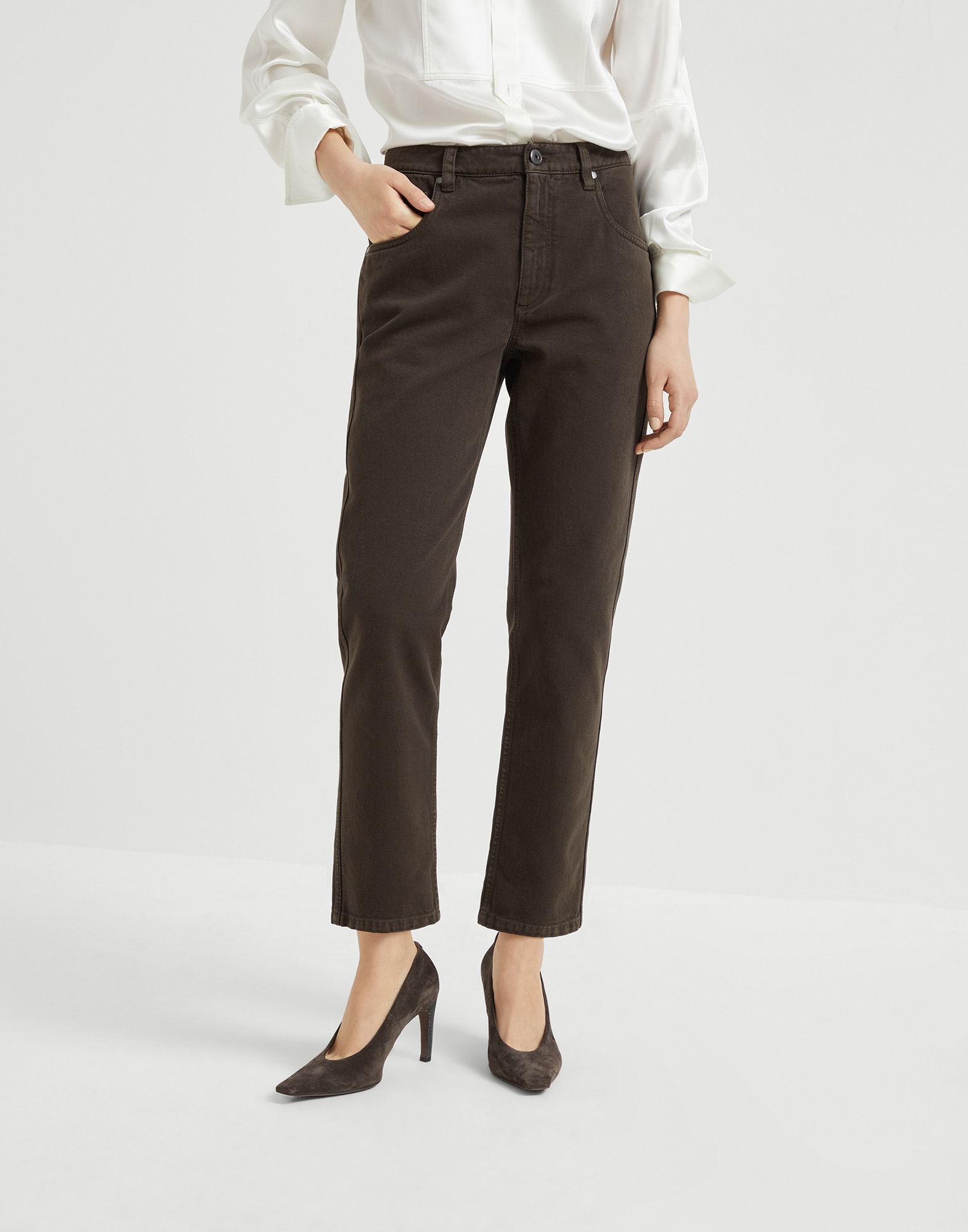 レディース 向け チョコレート ストレートフィット 5ポケットトラウザーズ | Brunello Cucinelli