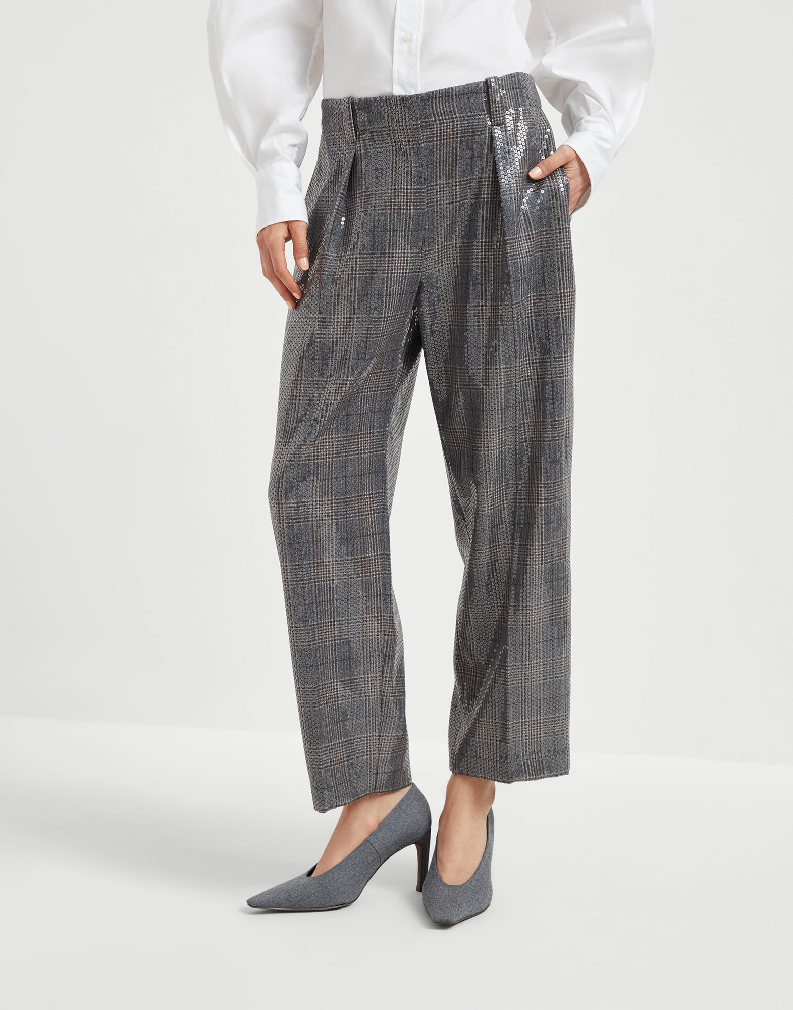 レディース 向け アントラサイト プリンスオブウェールズ刺繍 トラウザーズ | Brunello Cucinelli
