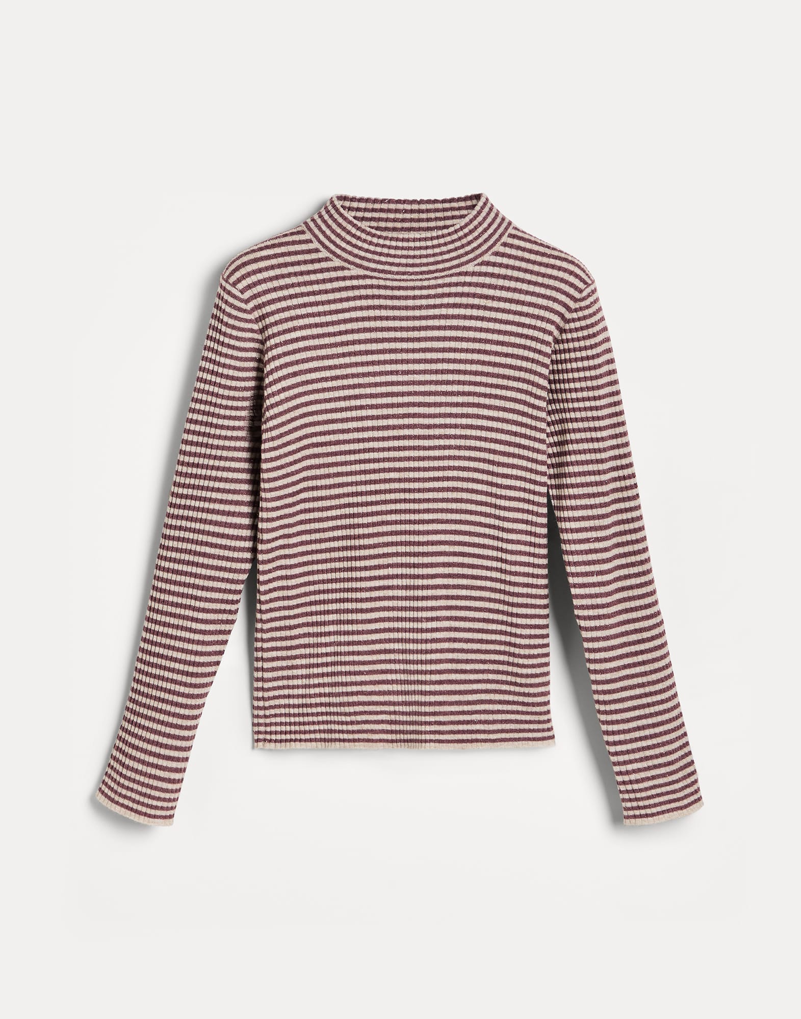 細部に至る心遣いと、Brunello Cucinelliスタイルならではの快適さ、そして高級素材がはっきりとみられるガールズニットウェアです。カシミヤスパークリングヤーンをストライプに編み上げたセーター。今コレクションの色遣いと繊細なラメを組み合わせました。やわらかく軽やかなヤーンが、快適なレギュラーボリュームがポイントとなったフィット感を引き立てています。
