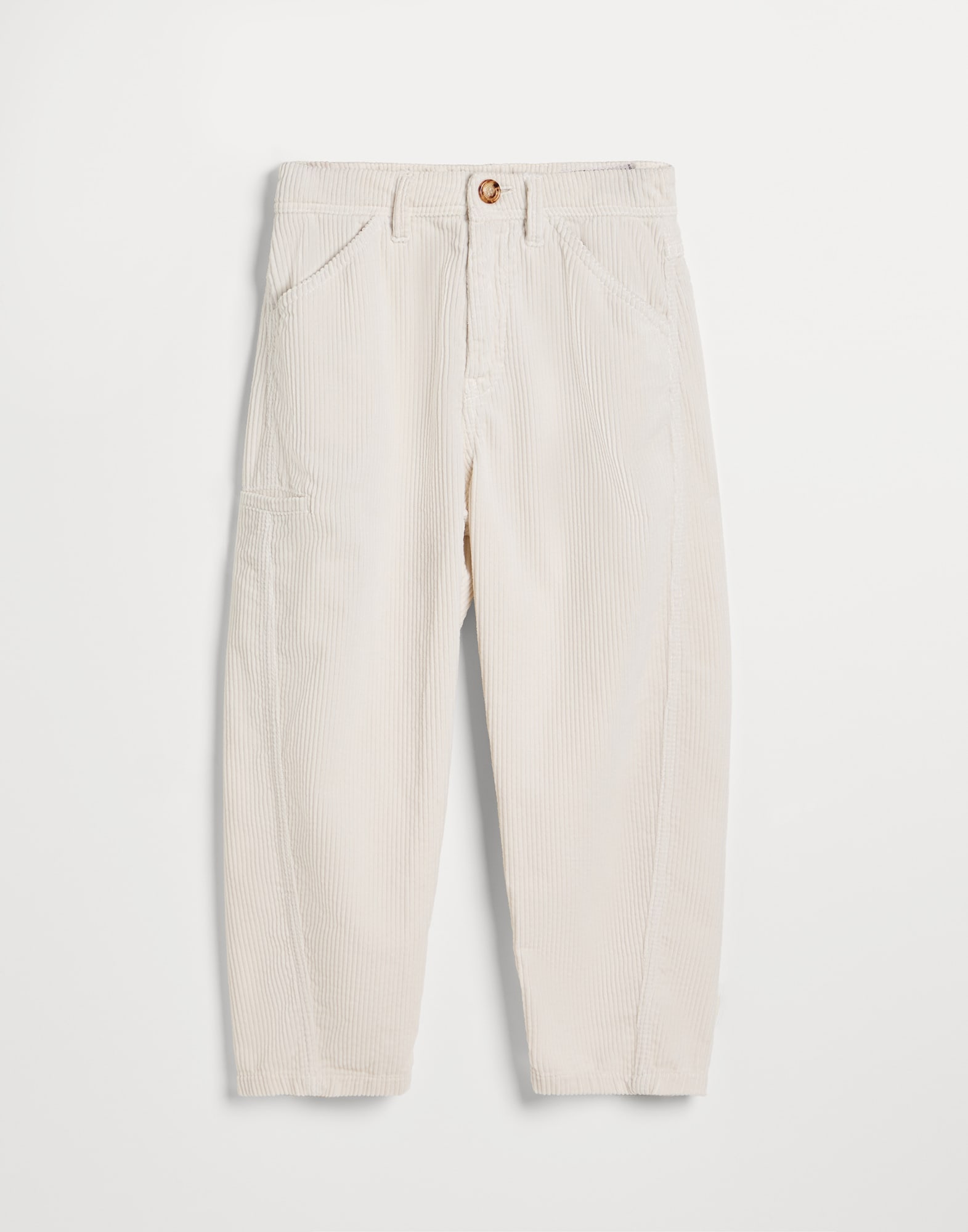 対照的なインスピレーションを洗練されたバランスで表現したエルゴノミックトラウザーズ。クラシックを極めたコーデュロイ布地がエレガントで洗練されたタッチを与えました。人間工学に基づいた構造とカジュアルなフィット感が現代的でリラックスした雰囲気を際立たせています。脚のラインに自然に沿うラインで動きを強調し、サイドの飾りステッチで生地の柔らかな質感を引き立てました。