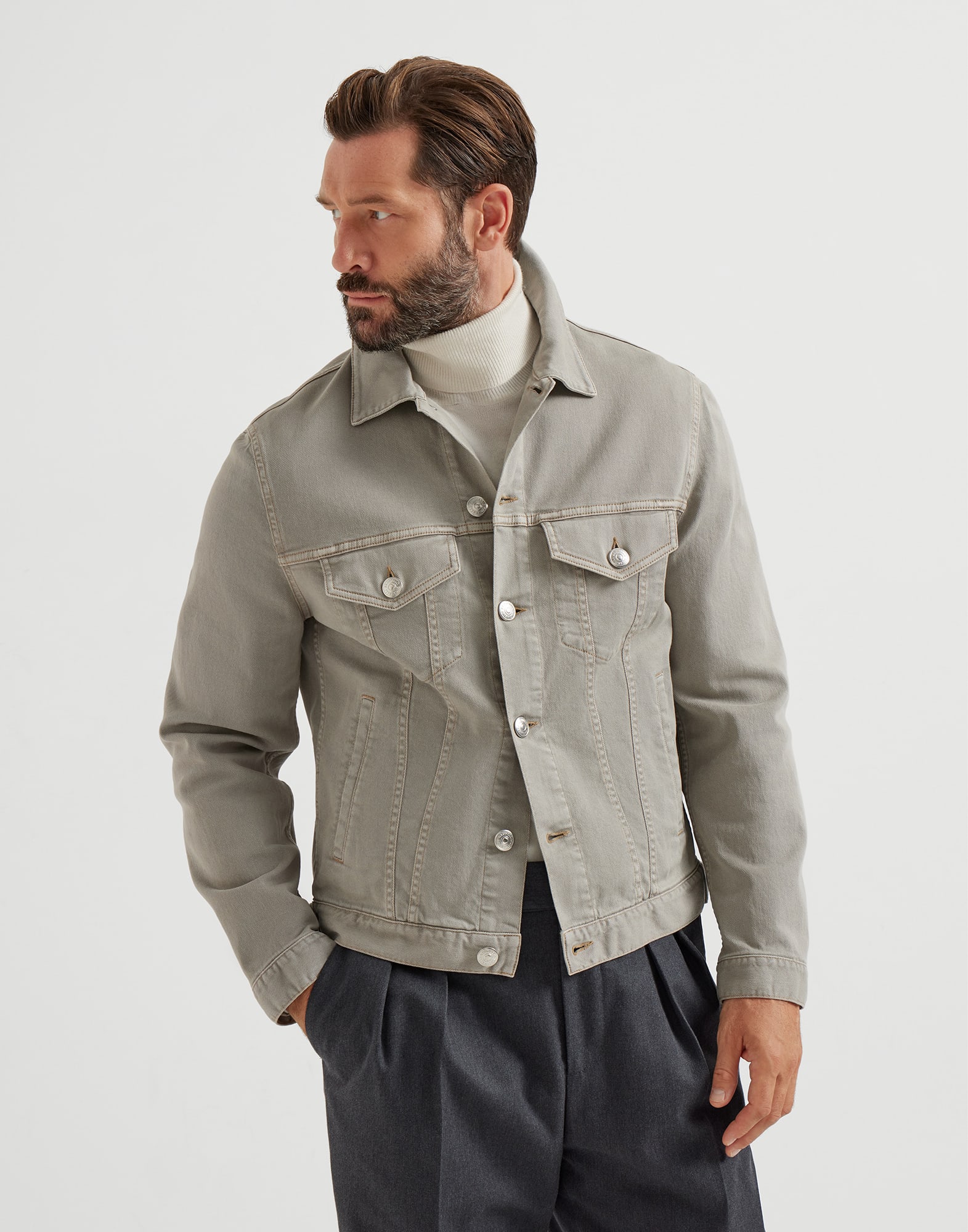 メンズワードローブの定番スポーティモデルである、4ポケットブルゾンのスタイルに、Brunello Cucinelliならではの高級素材で品格を添えました。胸ポケット、メタリックボタンとコントラストステッチのディテールがデニムテイストを思わせ、それにガーメントダイコットン布地に施した淡いカラーグラデーションがもつユーズド感を加えています。