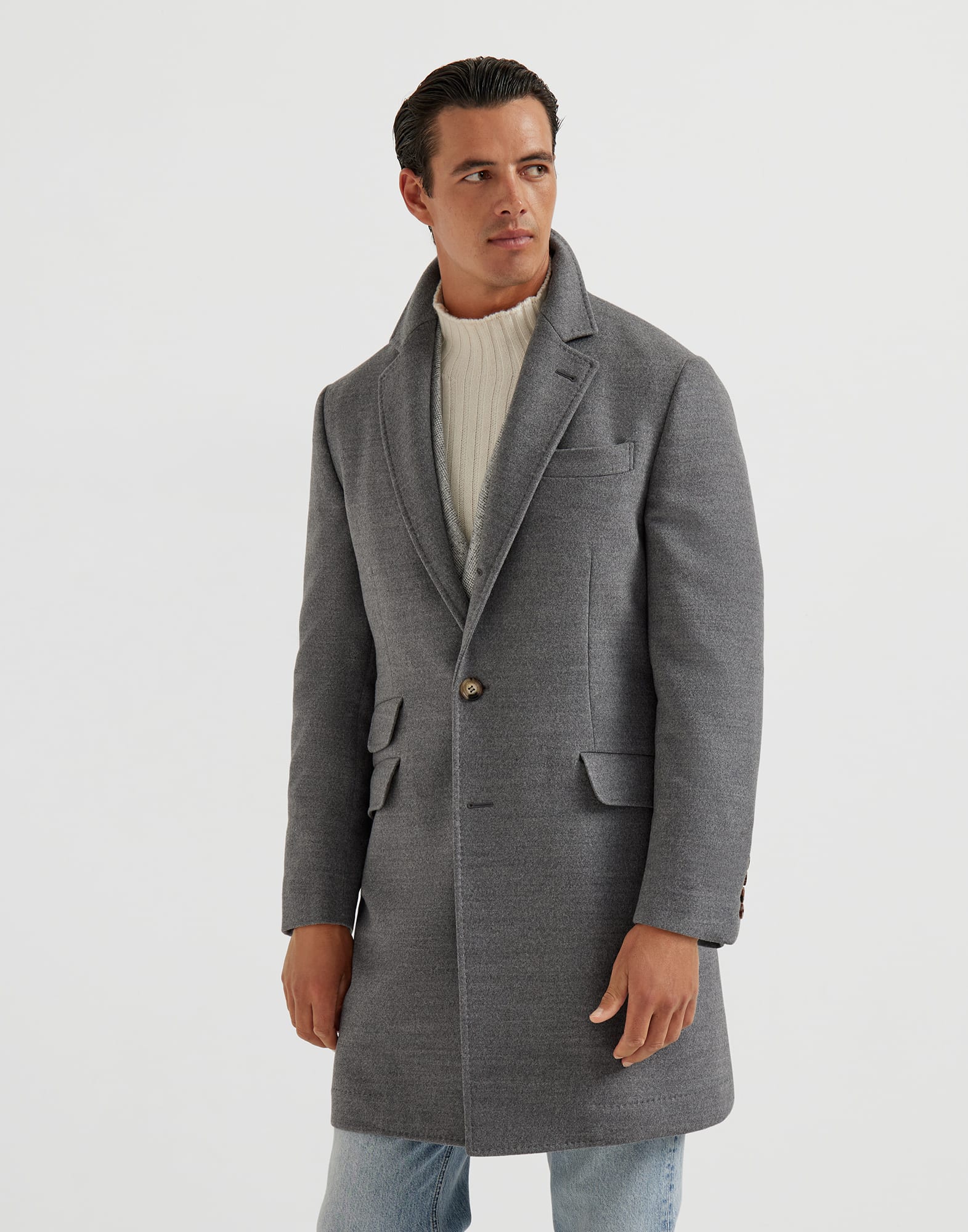 メンズ 向け ミディアムグレー ハンドメイド コート | Brunello Cucinelli