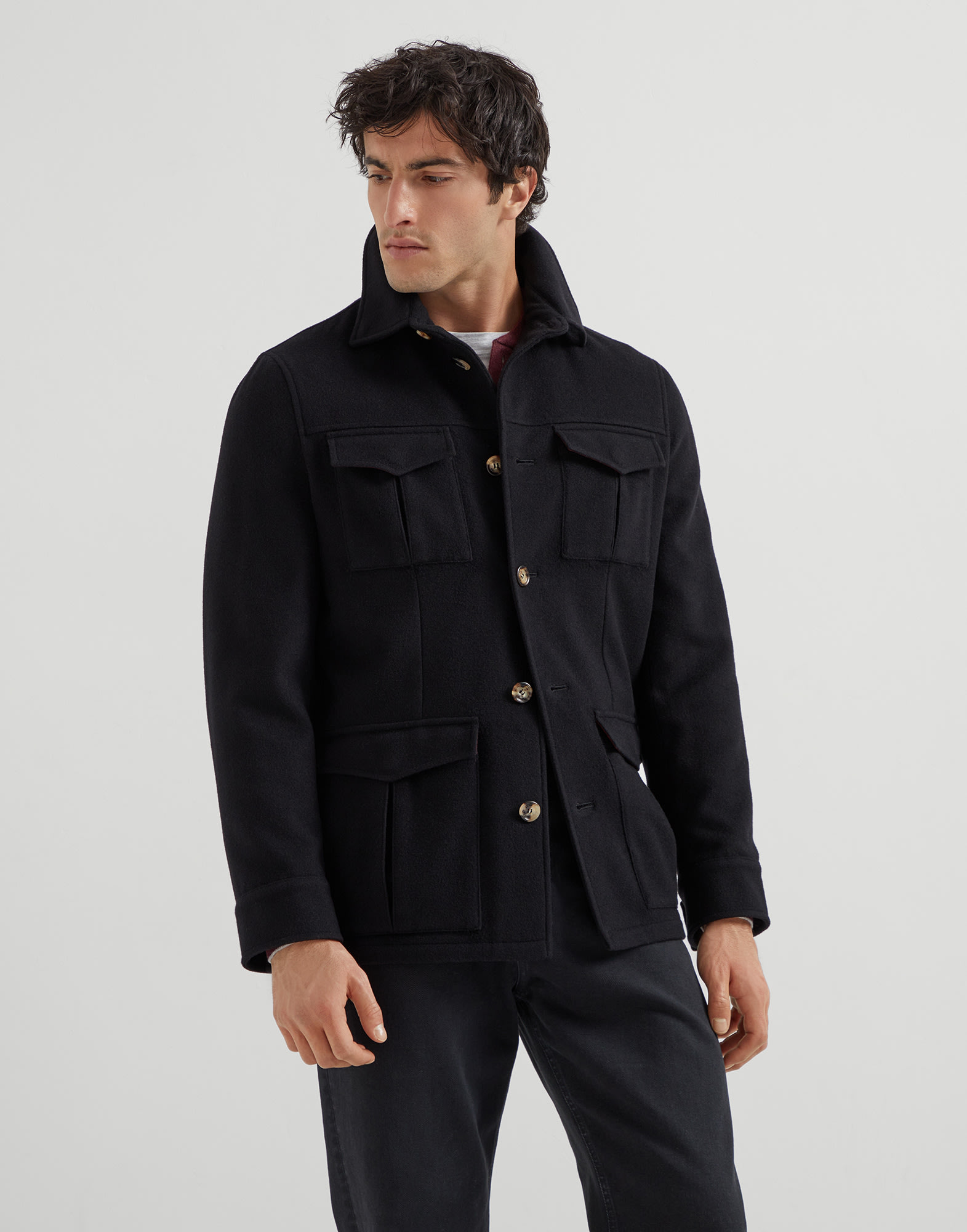 Brunello Cucinelliの高級繊維と加工・細工で本質的なスタイルをランクアップさせた、ピュアカシミヤライトウェイトクロスのフィールドジャケット。シーズンカラーに染め上げたクロスでは、軽やかで包み込むような質感と、なめらかできわめてやわらかい手触りを組み合わせました。実用的なウォーターレジスタント加工を施したアイテムです。シャツカラーやパッチポケット4つなどのクラシックなディテールで、快適なレギュラーフィットを完成させています。