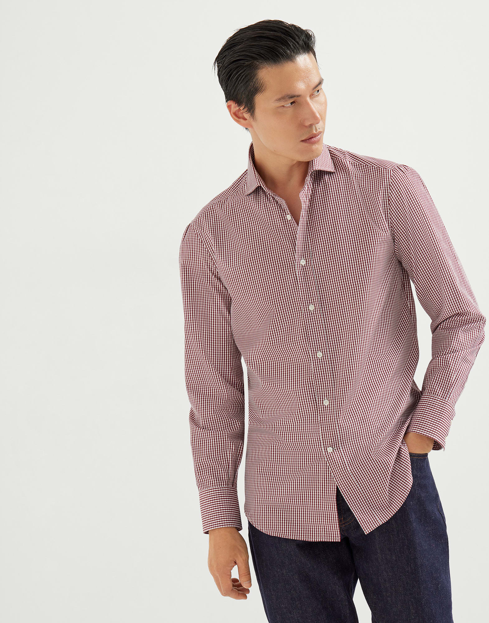なめらかでコンパクトなピュアコットン生地に、クラシックで活躍の場を選ばないチェックモチーフを加え、シーズンカラーを引き立てました。