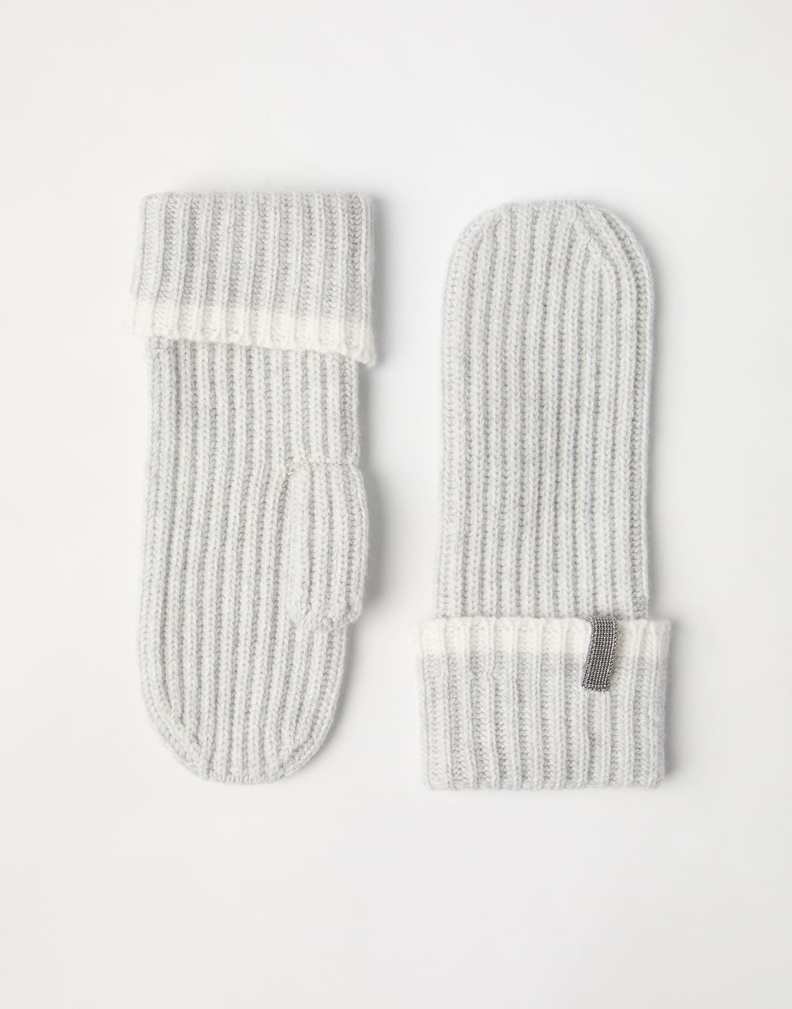 Brunello Cucinelliの高級繊維で豊かさをプラスした、カシミヤニットのミトン。イングリッシュリブのすたれることのない編地で柔らかなヤーンを引き立て、このアクセサリーのこの上ない冬らしさを強調しています。ブリリアントなモニーレディテールでフェミニンなきらめきを与えました。
