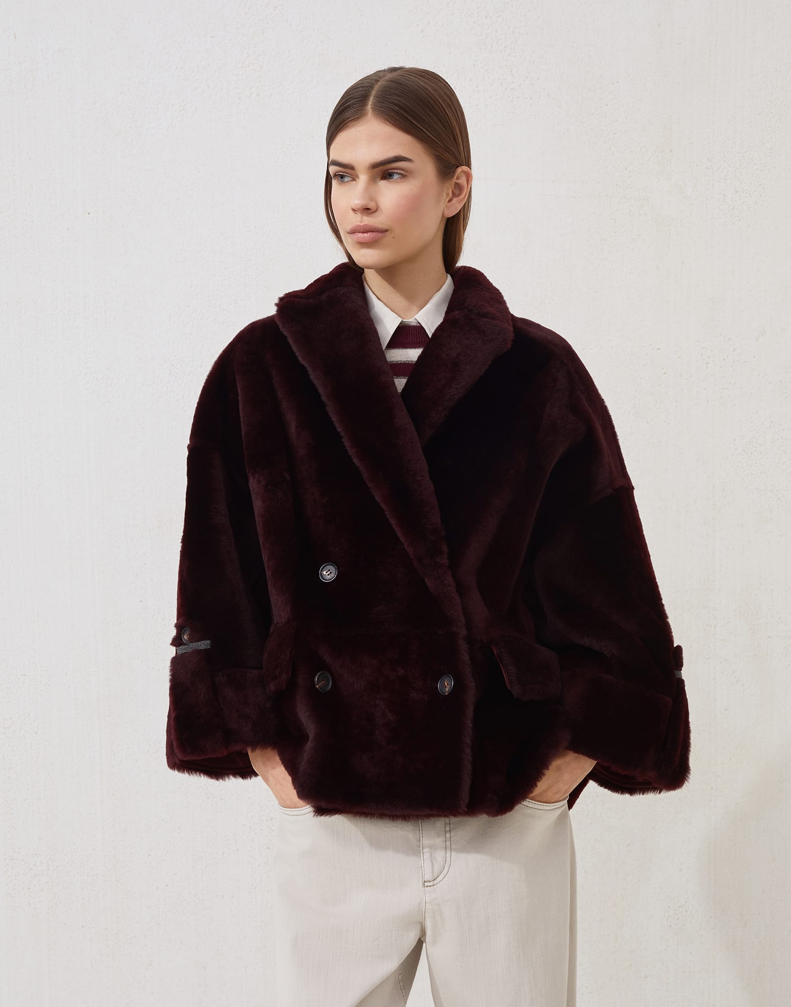 レディース 向け バーガンディー シアリング リバーシブルアウターウェア | Brunello Cucinelli