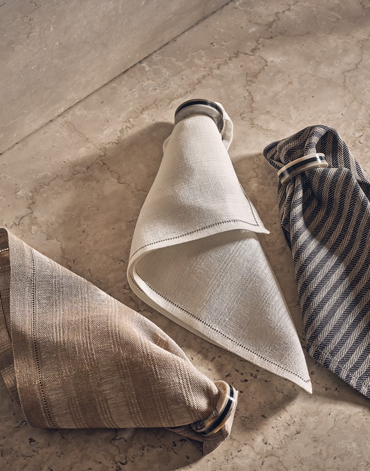 다른 2개 제품 보기Table linen is enriched with natural linen placemats and runners, where refined weaves and handcrafted techniques express sober elegance. Striped motifs and neutral nuances harmoniously accompany every moment of conviviality.