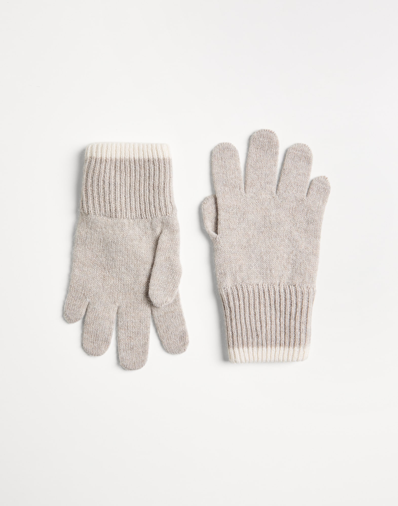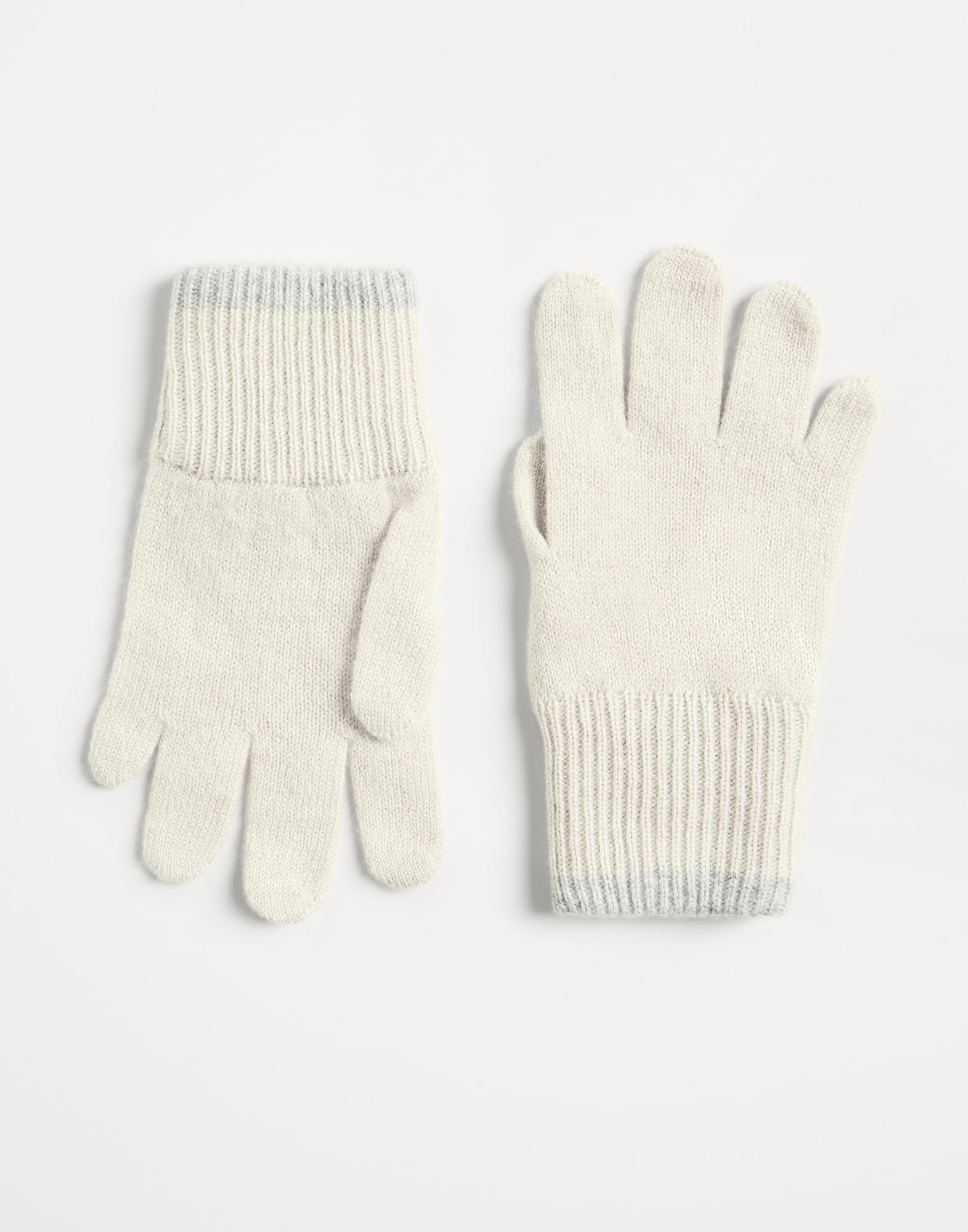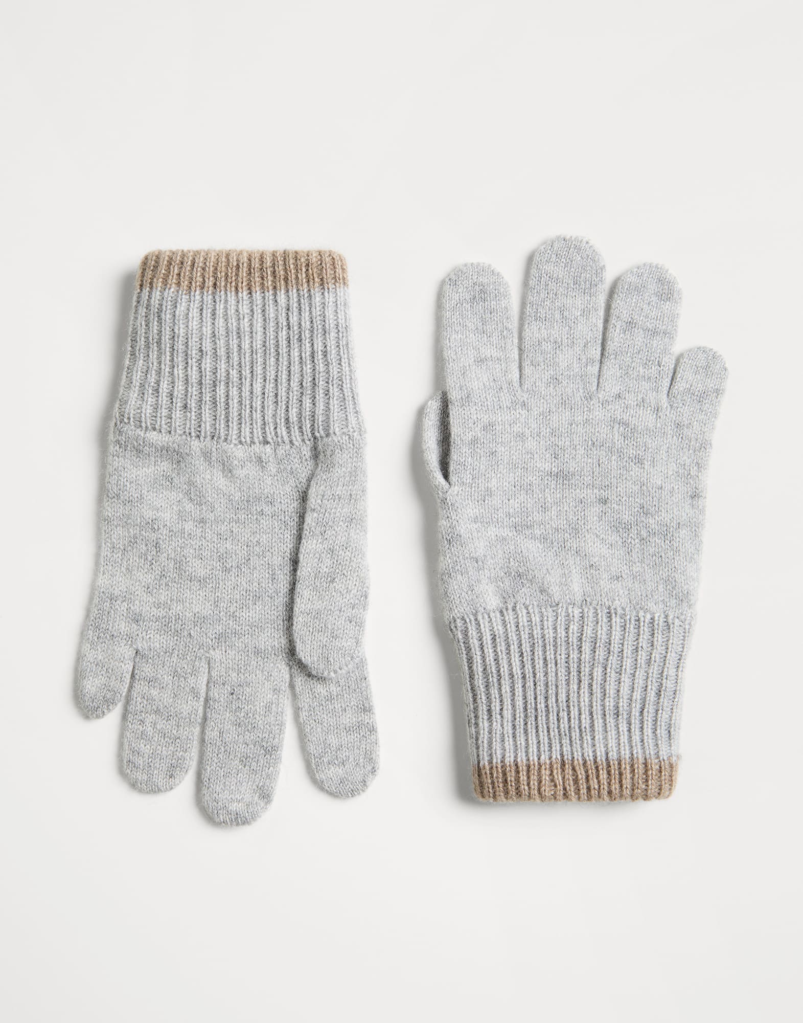 Эти мягкие перчатки прекрасно защитят от холода в зимний сезон. Теплый и легкий аксессуар выполнен из чистого кашемира — культовой пряжи коллекций Brunello Cucinelli. Край контрастного оттенка завершает аксессуар небольшим цветным штрихом.