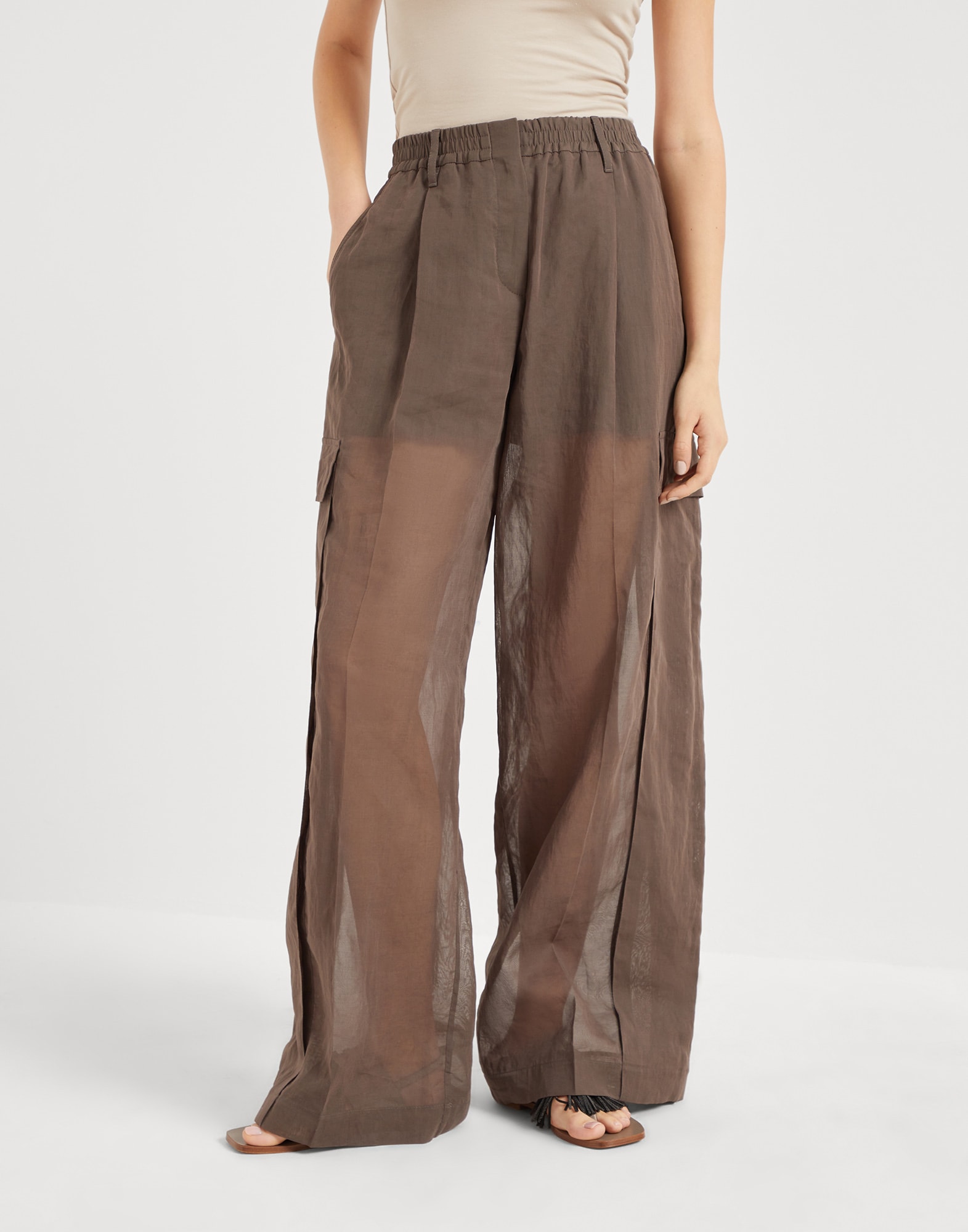 柔软且线条蜿蜒的轮廓与夏日品味的棉欧根纱相遇,打造出这款 Explorer 运动裤的风格。工装风的口袋,与精裁的打摺细节相遇,赋予这款长裤别致的考究风格。轻盈而柔美的欧根纱,以其些许透明的质感提升了休闲放松版型的经典,腰头松紧带的实用,提升了长裤的设计感。